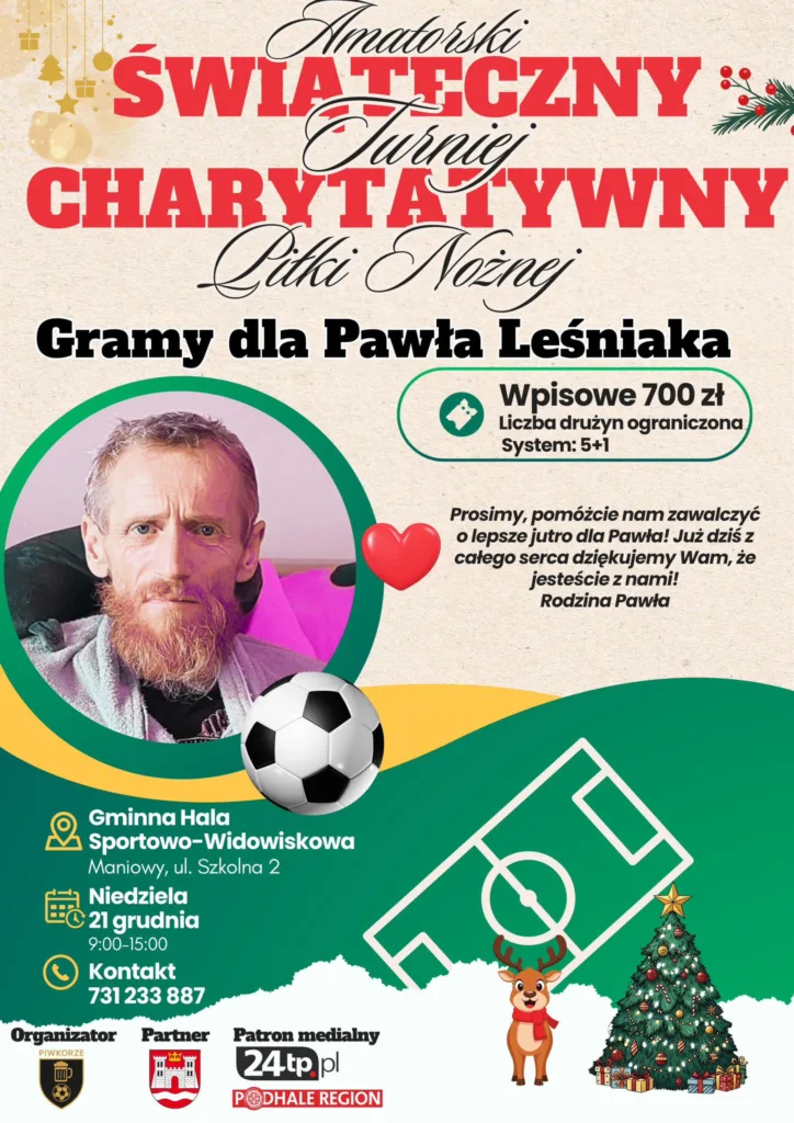 Amatorski Klub Piłkarski PIWKORZE organizuje świąteczny turniej charytatywny – gramy dla Pawła Leśniaka! ![]()